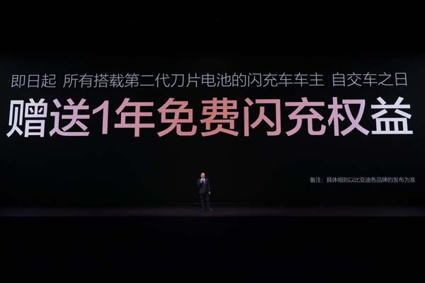 BYD Chairman Wang Chuanfu announced that owners of vehicles equipped with the second-generation Blade Battery will receive one year of free flash charging at BYD’s charging stations nationwide, starting from the vehicle delivery date.